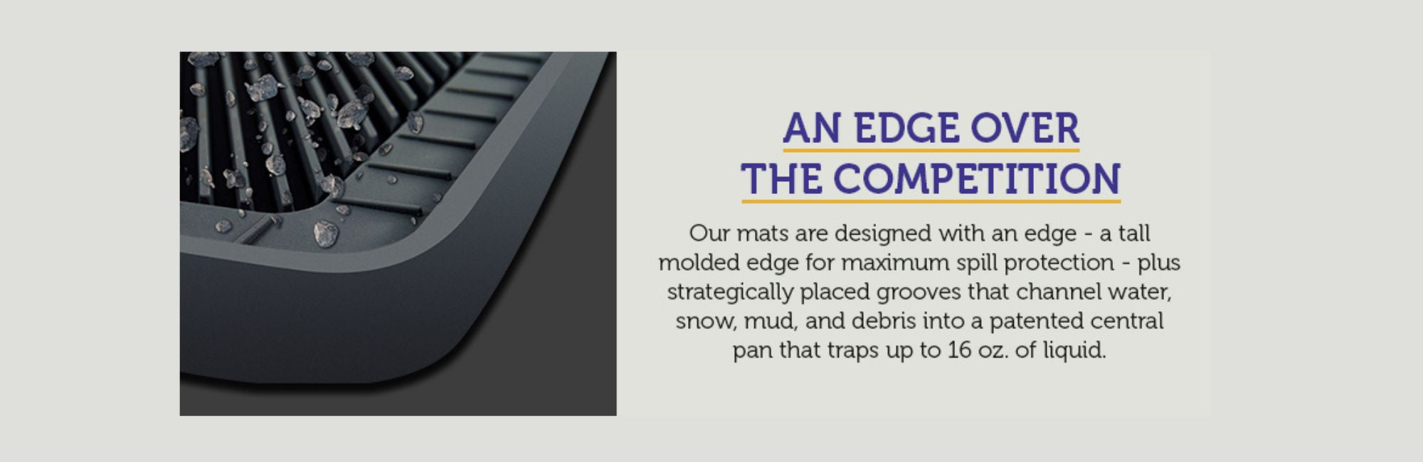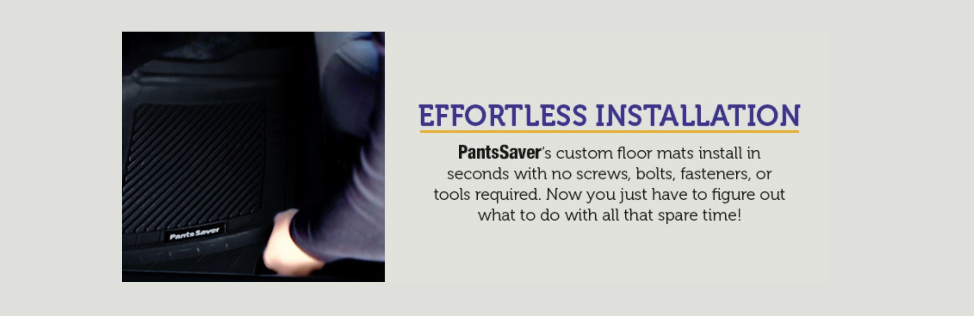 Designed to custom fit the complex contours and surfaces of your vehicle's floor space. Pants Saver Custom Fit Car Mat will protect your interior carpet and help keep Deep grooves channel water, snow, mud, spills, and debris to a unique central pan that traps up to 500 mL (16 oz.) of water and easily wipe or rinse clean.