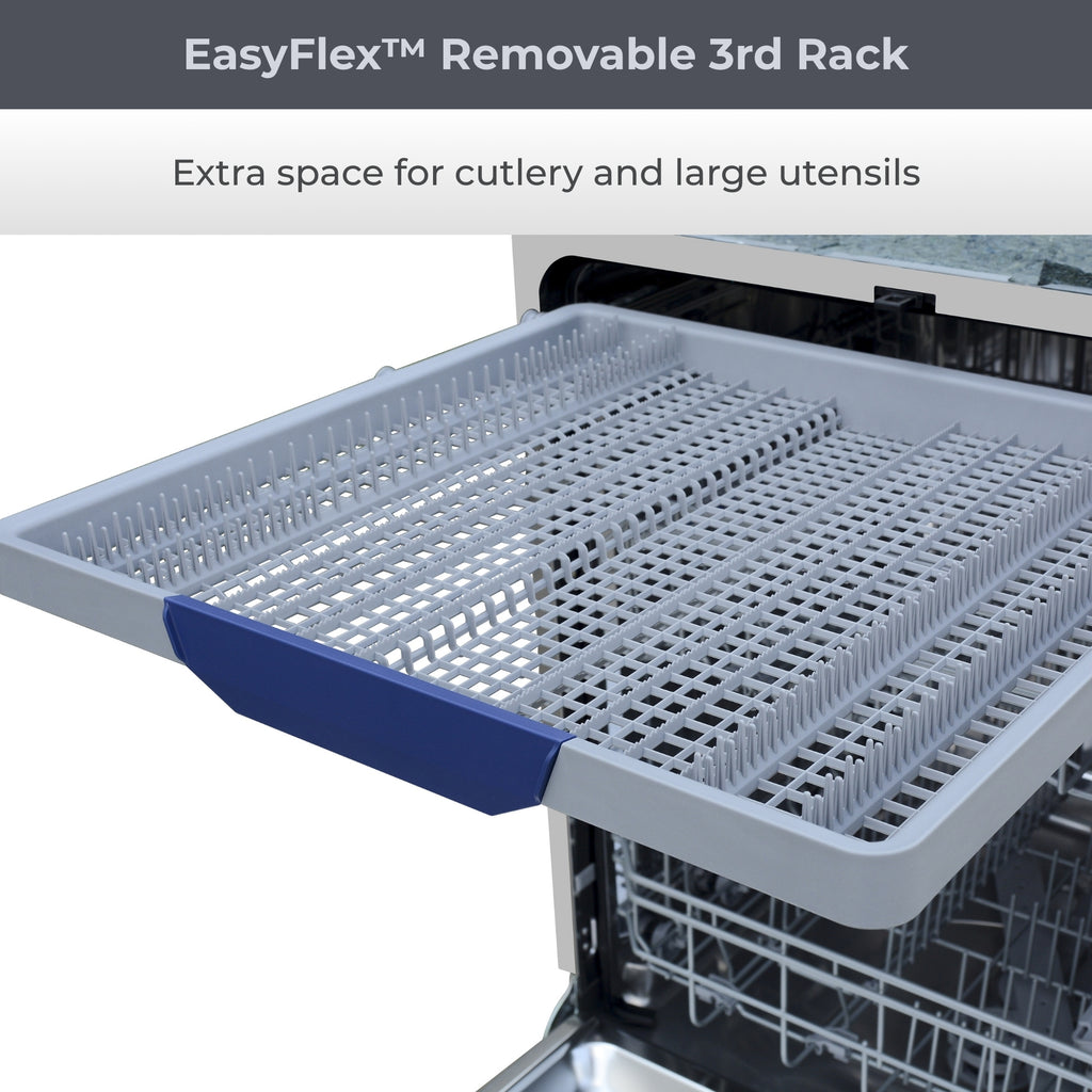 • 3-Rack Flexible Loading: EasyFlex™ removable third rack and adjustable second rack provide versatile loading—this lavavajillas adapts to cutlery, tall items, and oversized cookware.