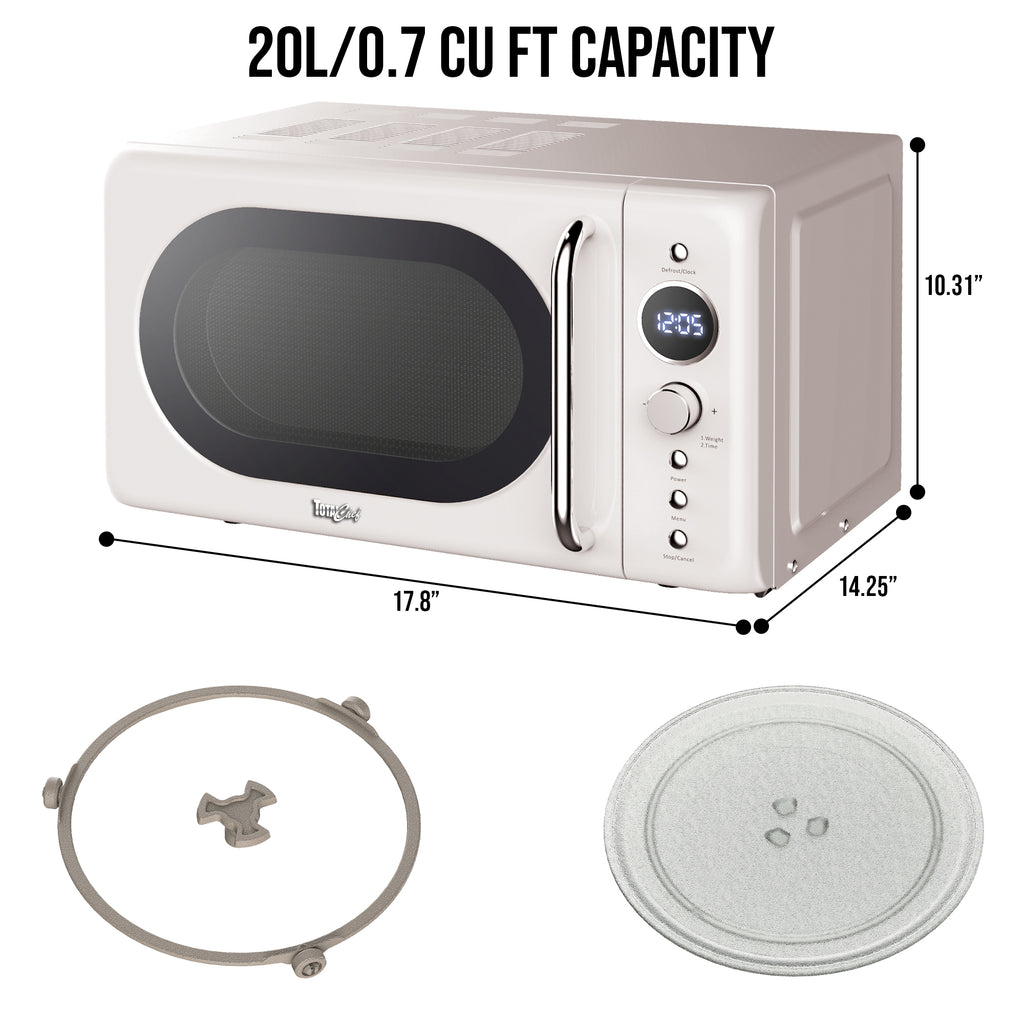 Space-Saving Design: Compact countertop microwave with 0.7 Cubic Foot (20L) capacity is the perfect solution for apartment kitchens, office lunch rooms, cottages, RVs, and dorm rooms.